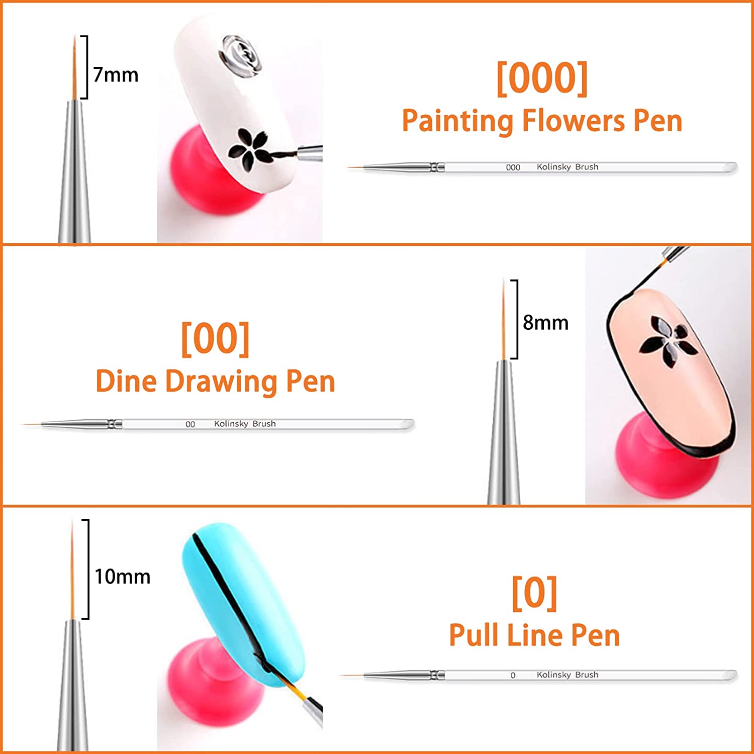 【Hyny & Tiny Nail Brush Pens, Quality and Durable】 El cepillo está hecho de aleación de calidad y lana de nailon, con la flexibilidad adecuada y cerdas que no se pierden fácilmente.