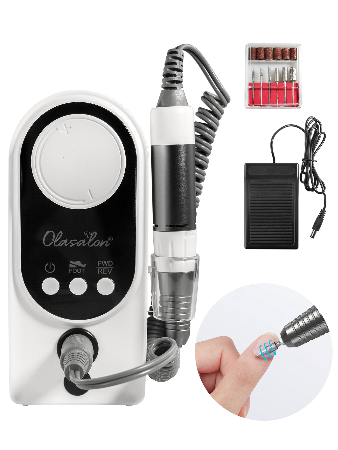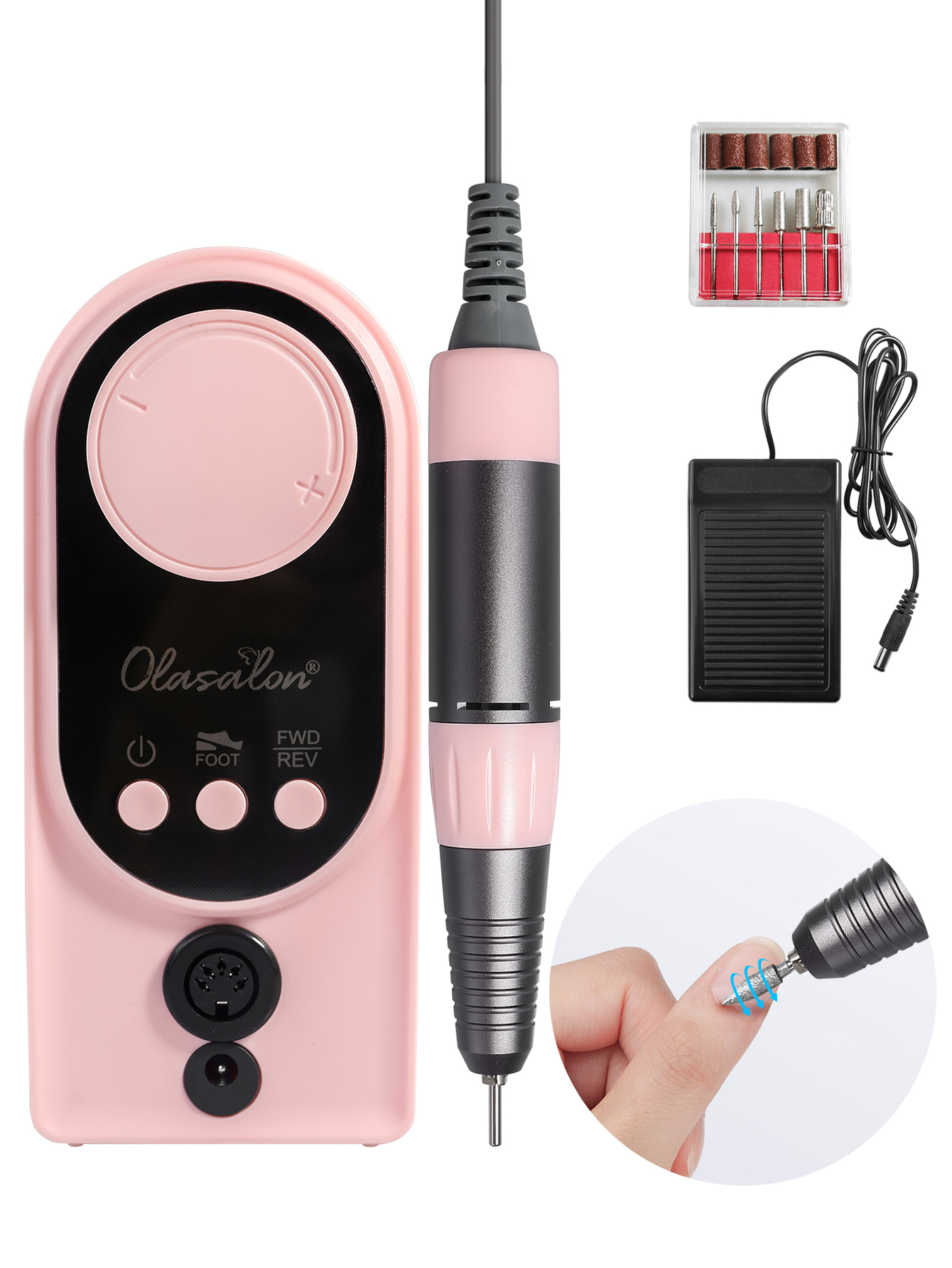 2. Conecte la interfaz de la pieza de mano a la drill3 del clavo. Gire para ajustar la velocidad de la broca del clavo, abra el botón theswitch, puede empezar a trabajar.
